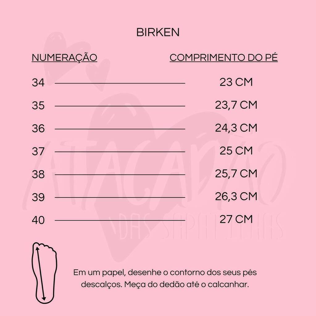 Descrição: Birken bico redondo, com detalhe em fivela e aplicações em cravinhos. Nossos calçados acompanham espuma na palmilha, além de super práticos e feitos pra você arrasar. Ótima opção para quem ama ser autêntica e estilosa.